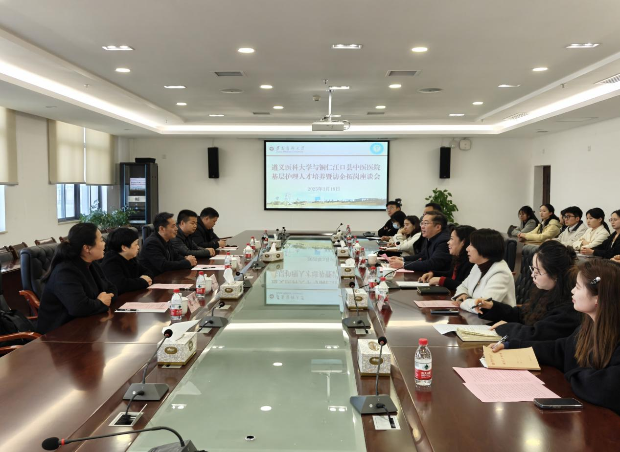 3月19日,公司党委副书记郭宇亮,护理公司党委书记张咏梅、党委副书记陈伟以及师生代表在行政楼四楼会议室与铜仁市江口县中医医院开展访企拓岗促就业座谈交流活动。座谈会由护理公司党委书记张咏梅主持。