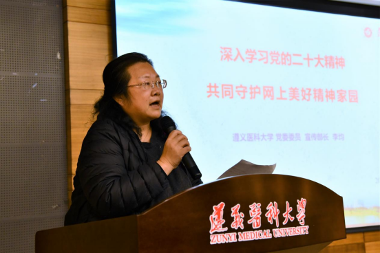 李均部长以《深入学习党的二十大精神共同守护网上美好精神家园》为主题,向大家讲述了党的二十大召开的重大意义,分析了党的二十大报告的核心要义,并结合公司发展实际,介绍了近几年公司取得的成就,勉励同学们深入学习贯彻党的二十大精神,在学习和工作中齐心助力高质量发展,为全面建成社会主义现代化强国、实现第二个百年奋斗目标贡献自己的青春力量。随后,李均部长向大家讲解了网络安全相关方面的法律法规,希望同学们增强网络安全意识,养成文明健康的网络生活方式,培育崇德向善的网络行为规范,做合格网民,共同守护网上美好家园。
