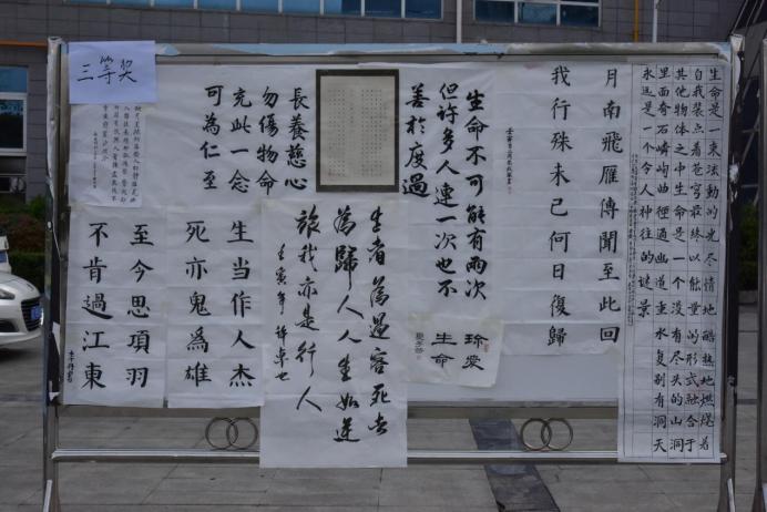 本次展览前期面向全校师生征集作品,共收到绘画作品66幅,书法作品39幅,经专家组评审,评选出绘画作品一等奖5名;二等奖10名;三等奖15名;评选出书法作品一等奖3名,二等奖6名;三等奖9名。展出作品紧扣主题,表现形式灵活多样,构图大方,色彩鲜明,从不同方面表达了员工对生与死的理解,展现了公司员工积极向上的精神风貌,同时,也让前来观摩的同学理解到了生与死的意义和价值。(审核:邓仁丽;撰稿:陈娅;拍摄:姜健红)