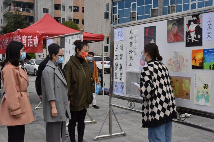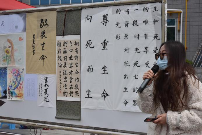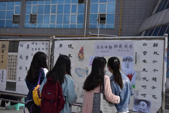展览现场,不仅设置了ACP知识介绍、ACP知识竞答、生死态度调查、生死诗词赏析、遗体捐赠介绍等五站式集章活动,还邀请了作品的创作者亲临现场给大家分享创作过程和作品中所蕴含的意义,迎来了众多同学参与和观摩。同学们个个热情洋溢、兴致盎然,一边听讲解,一边细细品味,时而驻足端详,时而相互谈论,沉浸在字与画的美妙意境里。