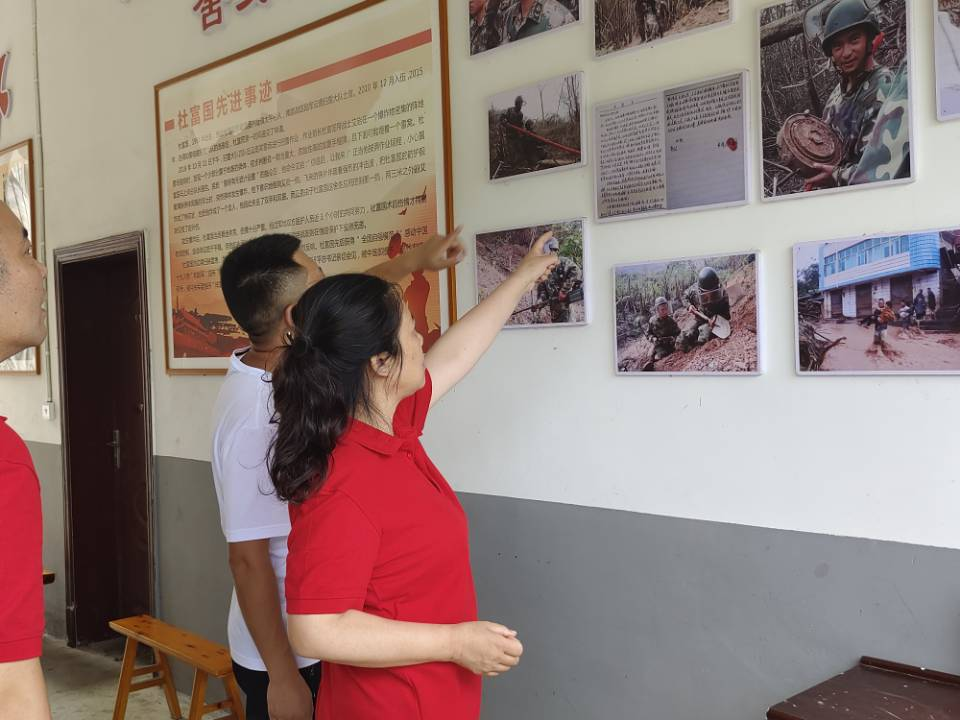 在太平村周洪副主任的带领下,全体师生参观了“排雷英雄”杜富国的老家,并对他的英勇事迹进行了详细讲解。随后,邀请了全国抗击新冠肺炎疫情先进个人、全国抗击新冠肺炎疫情三八红旗手、湄潭县人民医院派驻抄乐镇沙塘村第一书记杜富佳与同学们座谈交流,她从兄长杜富国的故事说起,分享了“国佳民强”一家人的故事,讲述了自己受兄长精神鼓舞、主动请缨支援武汉的经历,以及自己作为一名新时代青年在抗击新冠疫情、助力乡村振兴的担当与使命,鼓励同学们要厚植家国情怀,感党恩、听党话、跟党走,立志传承红色基因,赓续红色血脉,努力成为堪当民族复兴大任的新时代青年。最后,伴随着慷慨激昂的音乐,在公司党委书记张咏梅的指挥下,师生齐唱《歌唱祖国》,嘹亮的歌声在激情的夏日回荡,唱出了大家浓浓的爱国情。