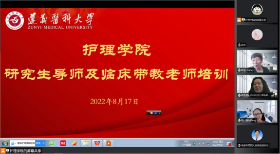 为进一步提升研究生人才培养质量,强化研究生导师及临床实践带教老师立德树人职责,加强研究生导师队伍建设,培养适应国家护理事业发展需要的德才兼备的高层次护理人才,公司于2022年8月17日下午14:30采用线上线下相结合的方式,在大连路阶梯教室三楼学术报告厅顺利举办2022年研究生导师及临床实践带教老师培训会。护理公司党委书记张咏梅、党委副书记、经理邓仁丽、副经理周静、副经理王连红出席培训会,培训会由388vip太阳集团副经理周静主持。来自本部、珠海校区和13个联合培养单位的研究生导师、临床实践带教老师及实践基地管理人员共约150余人参会,并在二附院设置分会场。