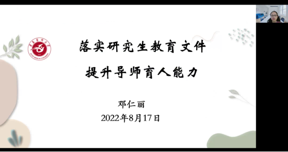 参会导师及临床实践带教老师们在线上展开了深入的互动交流,纷纷表示,本次培训不仅让他们系统、全面地学习了研究生教育的相关文件及过程管理制度,进一步明晰了导师及临床实践带教老师的工作职责及方法,也给予他们极大的精神鼓舞,在今后公司产品过程中,要贯彻“立德树人”职责,关注研究生的身心成长,做他们的人生引路人和朋友,用实际行动践行育人初心。(撰稿:肖旋、谌绍林;一审:周静;二审:陈伟;三审:张咏梅;摄影、截图:肖旋、成瑞。)