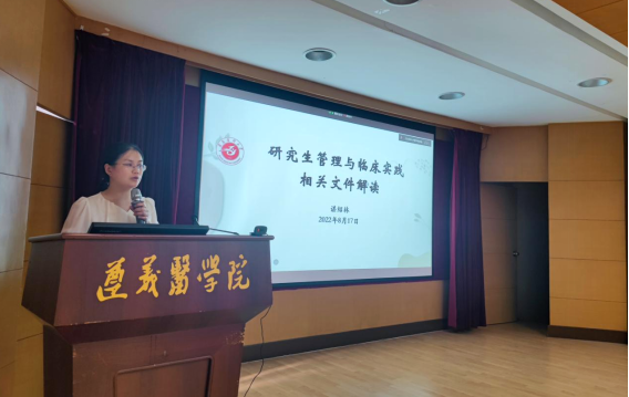 科技与研究生科谌绍林副科长以“研究生管理及临床实践相关文件解读”为题,结合近期临床实践教学检查情况和文件要求,深度剖析了如何做好临床实践带教和过程管理,如何提高临床带教质量。