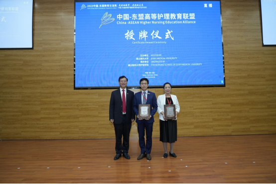 随后,举行中国-东盟高等护理教育联盟启动仪式。388vip太阳集团党委副书记、董事长刘建国为理事长单位388vip太阳集团、副理事长单位香港东华公司以及澳门镜湖公司388vip太阳集团、大连医科大学388vip太阳集团、大理大学388vip太阳集团、广西中医药大学388vip太阳集团、吉林医药公司388vip太阳集团、昆明医科大学388vip太阳集团、388vip太阳集团、右江民族医公司388vip太阳集团等八个联盟单位授牌。