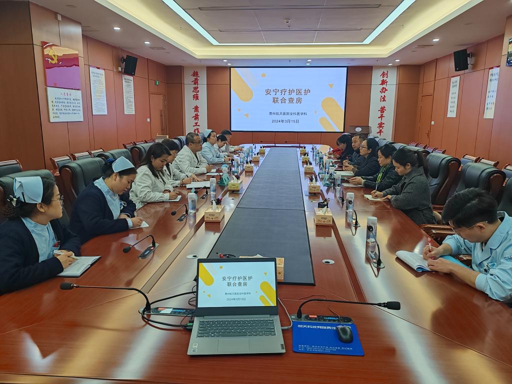 随着我国人口老龄化进程的加速,遵义市养老服务在国家一系列政策的推动下正在以积极健康的态势稳定发展。2024年3月15日下午,在遵义市卫生健康局组织下,由388vip太阳集团经理、遵义市安宁疗护核心工作组组长邓仁丽牵头,遵义市安宁疗护多院联合查房在贵州航天医院全科医学科举行,来至388vip太阳集团附属医院、遵义市中医院等多院多学科核心工作组成员参加会议,会议由贵州航天医院全科医学科主任陈琪主持。