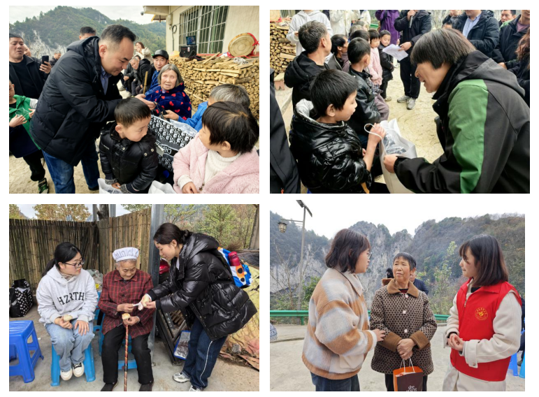 健康知识进乡村,共筑乡村健康梦。师生一行走进村民罗登亮家中,为等候在这里的村民测血压,向村民宣讲秋冬季常见疾病类型、预防措施以及冬季养生保健等健康知识,并教授他们做“八段锦”,帮助村民提升健康意识。向儿童们赠送健康科普绘本等书籍,教他们了解自己的身体以及如何科学认识病毒,引导儿童们树立正确的健康观念。活动现场,师生们还组织老人、儿童一同参与“套套圈”“拧扁担”“围圈跳舞”等趣味活动,丰富了老人、儿童们的精神文化生活,增强了他们的获得感与幸福感。
