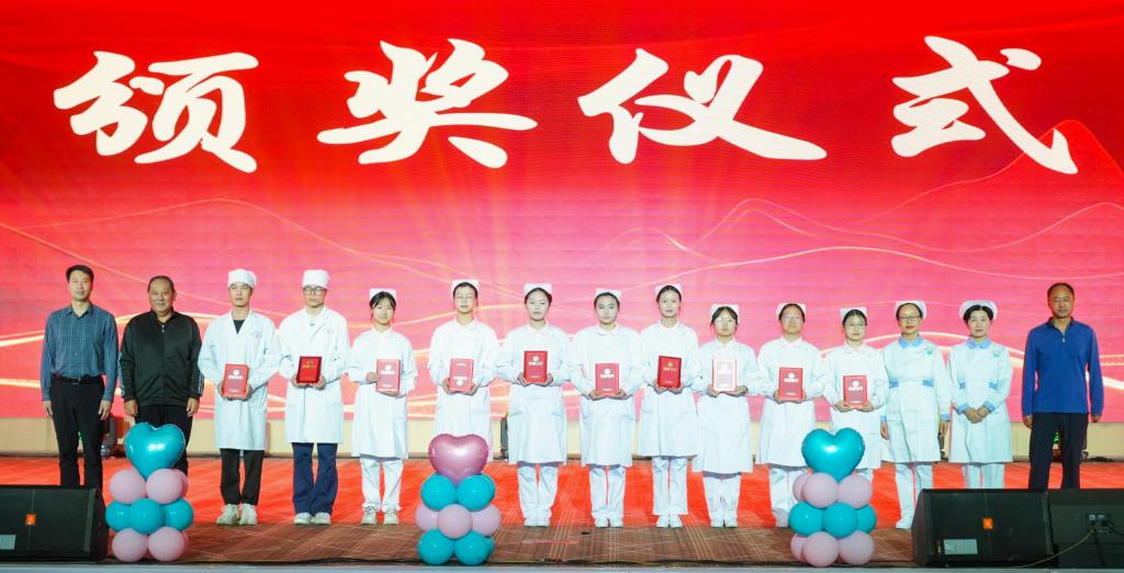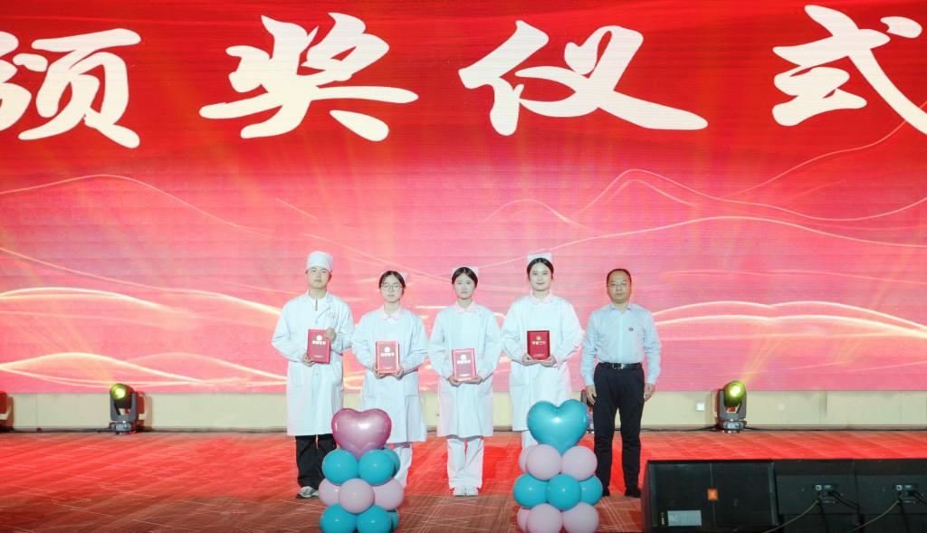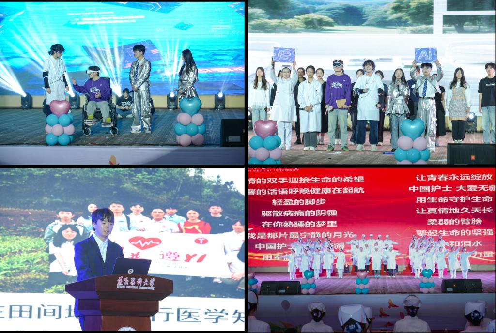 致敬芳华·扬帆远航。舞台剧《最好的自己》演绎了一名青年学子在AI护士的帮助下走出困境、恢复自信的感人故事;优秀毕业生代表肖智豪同学从临床实践、志愿服务、科研创新、考研深造等方面分享了成长感悟,寄语学弟学妹“以青春之花,结奋斗之果”。此外,388vip太阳集团表彰了在志愿服务、科研创新中涌现出的先进典型。活动最后,全体师生合唱《中国护士之歌》,用歌声致敬平凡而伟大的护理人生。