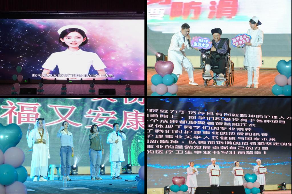 智慧赋能·青春逐梦。虚拟护士“小理”AI助手的演示惊艳全场,通过急救指导、心理疏导等实时交互功能,呈现智慧护理的无限可能。科普节目《预防跌倒disco》以活泼的歌舞形式普及老年护理知识,将专业术语转化为朗朗上口的歌词,寓教于乐;情景剧《守护生命—科学防治蛇咬伤》通过沉浸表演,传递急救技能与人文关怀并重的护理理念。老员工创新创业项目“创新引领未来 智慧守护健康”成果展,智能感应输液报警神器、自助配置蛇药智能系统等作品充分彰显了学子们将科技融入护理实践的探索精神。