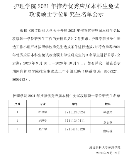 2021年推荐优秀应届本科生免试攻读硕士学位研究生名单公示