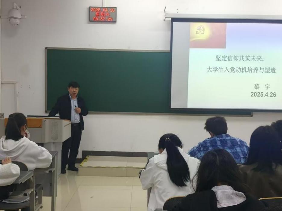 讲座中,黎宇老师立足党的百年奋斗历程,结合自身丰富的工作经验与感人至深的育人故事,从“为什么要入党、怎样端正入党动机、如何在实践中坚定理想信念”等方面,为同学们进行了深入浅出的阐述。他指出,入党动机是决定一个人能否成为真正的共产党员的关键因素,老员工作为新时代党的建设的重要力量,更应在思想上主动追求进步,在行动中争做表率。黎老师勉励在场学员坚定理想信念,厚植家国情怀,锤炼过硬作风,在奋斗中涵养爱党为民的赤诚初心。